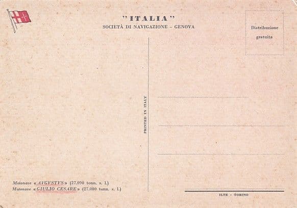 Passenger liner built at Monfalcone that made her maiden voyage, Genoa to South America, in 1951. Laid up in 1973 following steering problems and was then broken up at La Spezia.
