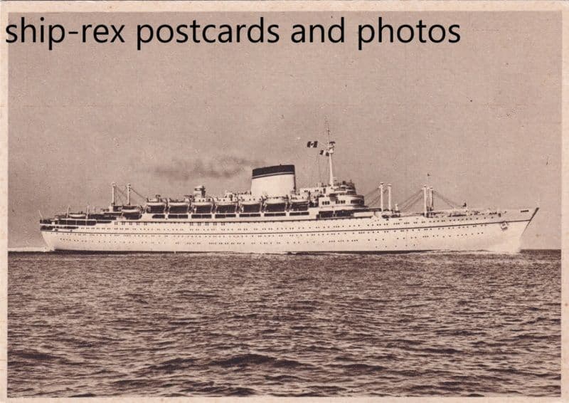 Passenger liner built at Monfalcone that made her maiden voyage, Genoa to South America, in 1951. Laid up in 1973 following steering problems and was then broken up at La Spezia.