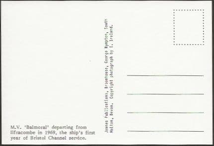 "Balmoral departing from Ilfracombe in 1969, the ships first year of Bristol Channel service"