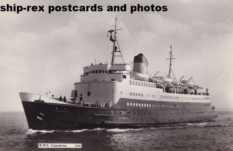 Passenger ferry built at Cowes and entered service as Caesarea on the Weymouth - Channel Islands service in December 1960. From 1975 sailing out of Dover or Folkestone. Sold in 1980 to Hong Kong owners with the intention of using her as a casino ship. Renamed Aesarea she was laid up at Hong Kong, probably never used. In 1986 she went to Kure, Japan for conversion to a hotel but later that year was broken up in South Korea.