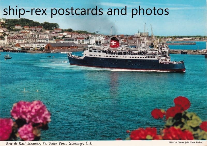 Passenger ferry built at Cowes and entered service as Caesarea on the Weymouth - Channel Islands service in December 1960. From 1975 sailing out of Dover or Folkestone. Sold in 1980 to Hong Kong owners with the intention of using her as a casino ship. Renamed Aesarea she was laid up at Hong Kong, probably never used. In 1986 she went to Kure, Japan for conversion to a hotel but later that year was broken up in South Korea.