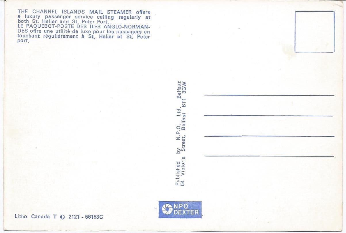 Passenger ferry built at Cowes and entered service as Caesarea on the Weymouth - Channel Islands service in December 1960. From 1975 sailing out of Dover or Folkestone. Sold in 1980 to Hong Kong owners with the intention of using her as a casino ship. Renamed Aesarea she was laid up at Hong Kong, probably never used. In 1986 she went to Kure, Japan for conversion to a hotel but later that year was broken up in South Korea.