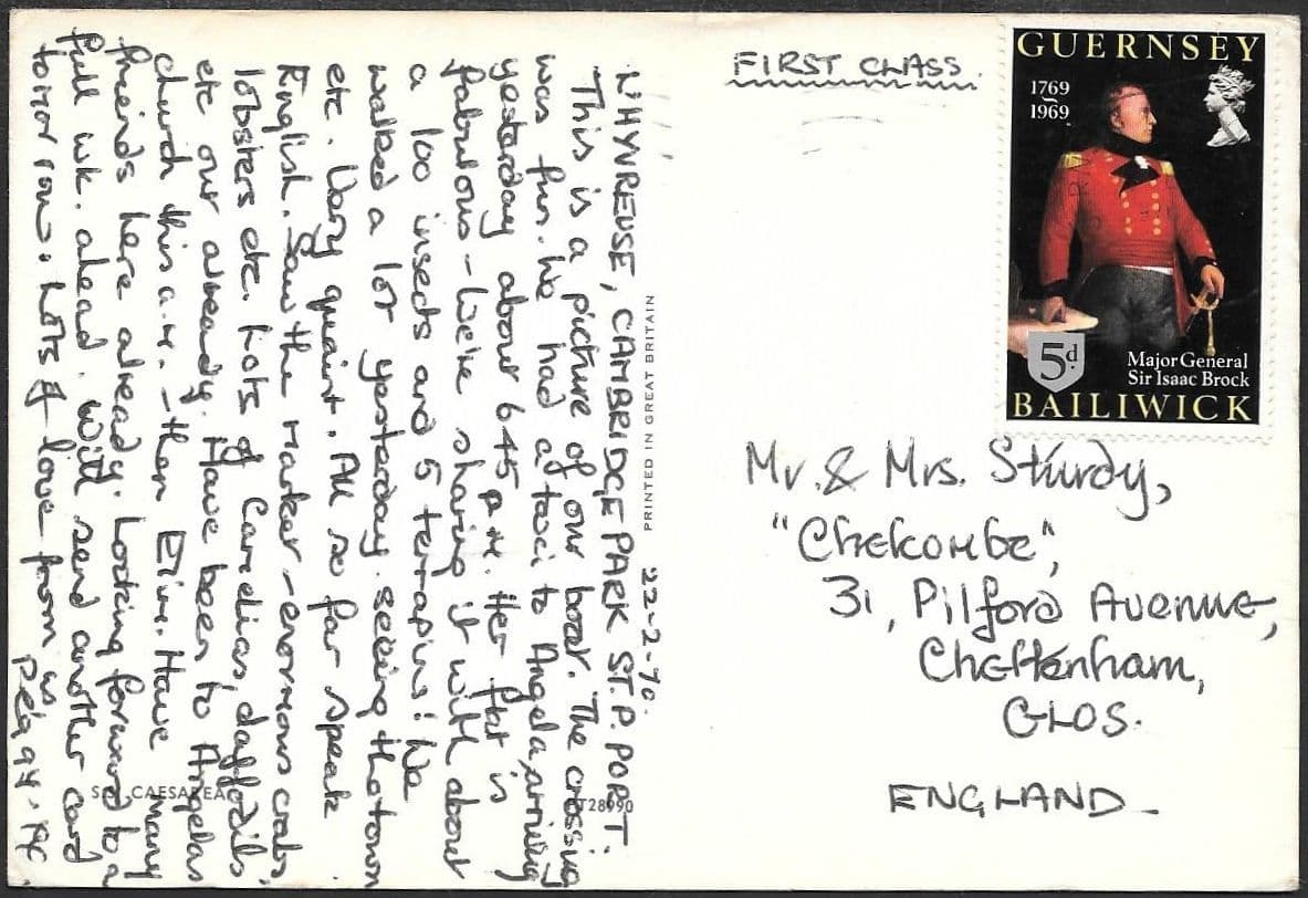 posted Guernsey 1970, small tear on top edge, other minor faults,