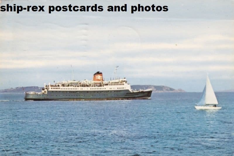 Passenger ferry built at Cowes and entered service as Caesarea on the Weymouth - Channel Islands service in December 1960. From 1975 sailing out of Dover or Folkestone. Sold in 1980 to Hong Kong owners with the intention of using her as a casino ship. Renamed Aesarea she was laid up at Hong Kong, probably never used. In 1986 she went to Kure, Japan for conversion to a hotel but later that year was broken up in South Korea.