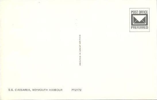 Passenger ferry built at Cowes and entered service as Caesarea on the Weymouth - Channel Islands service in December 1960. From 1975 sailing out of Dover or Folkestone. Sold in 1980 to Hong Kong owners with the intention of using her as a casino ship. Renamed Aesarea she was laid up at Hong Kong, probably never used. In 1986 she went to Kure, Japan for conversion to a hotel but later that year was broken up in South Korea.