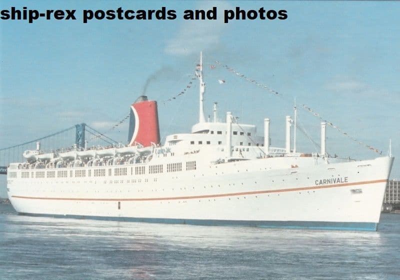 Launched in 1955 by Her Majesty Queen Elizabeth II, as the Canadian-Pacific liner Empress Of Britain. In 1965 she was sold to the Greek Line as Queen Anna Maria, then in 1975 to Carnival Cruise Line as Carnivale. Carnival transferred her to a new (and unsuccessful) subsidiary in 1993 as Fiesta Marina. Between 1995 and 1997 she sailed for Epirotiki/Royal Olympic as Olympic and was then sold to Tui Travel and was operated by Thomson Cruises as The Topaz. In 2003 she passed to the Peace Boat organisation before being laid up in 2005. She was broken up in 2008/2009.
