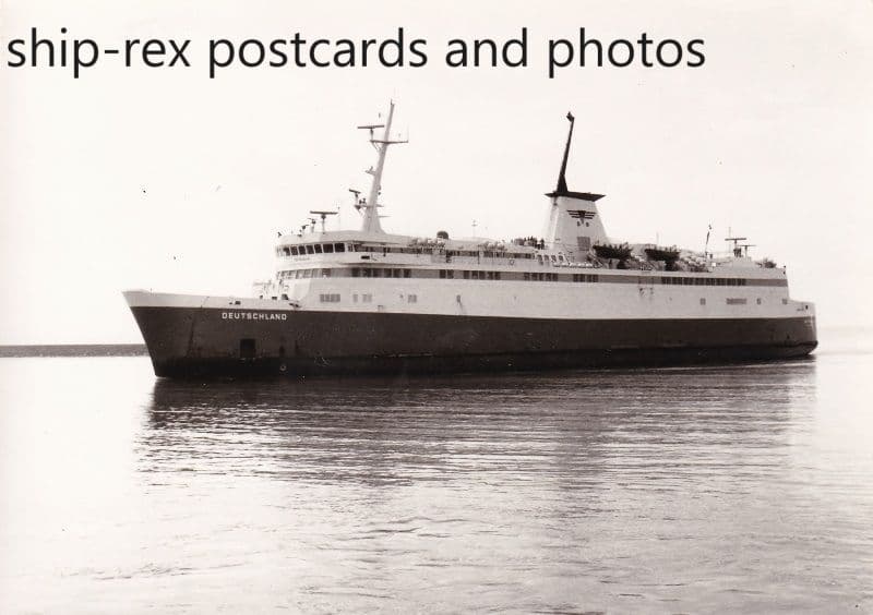 Train ferry built in 1972 at Rendsburg, Germany, as Deutschland for the German State Railway service from Puttgarden to Rodby. From 1991 she was sailing for DFO (Deutsche Fährverkehrsgesellschaft Ostsee). In 1998 she was sold to El Salam Shipping of Suez and renamed El Salam 97. After delivery to Port Said she suffered a major mechanical breakdown and in 1999 was sold for breaking up at Alang, India.