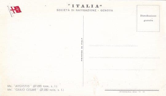 Passenger liner built at Monfalcone that made her maiden voyage, Genoa to South America, in 1951. Laid up in 1973 following steering problems and was then broken up at La Spezia.