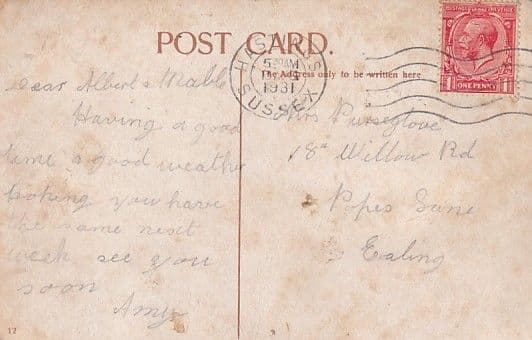 posted Hastings 1931, postage marks on front, marks, other minor faults,