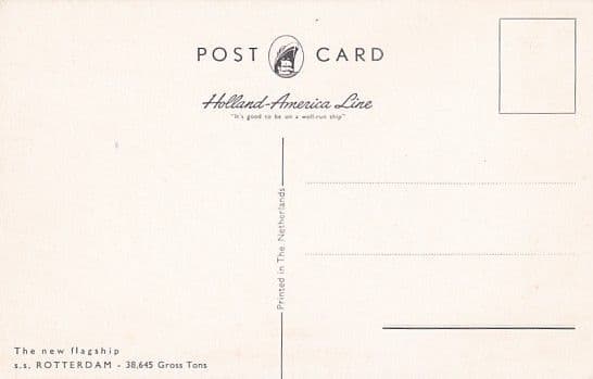 Passenger liner built at Rotterdam that entered service 1959 as Rotterdam for Holland-America Line, transatlantic in summer, cruising in winter. Flagship of the line. Transatlantic voyages stopped in 1969 and she became a permanent cruise ship. In 1997 she was sold to Premier Cruises and renamed Rembrandt. The company ceased trading in 2000. Since 2010 after a 4 year restoration, as Rotterdam, she has been open as a combined Hotel/Museum/School in the port of Rotterdam.