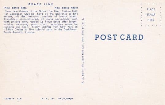SANTA ROSA, SANTA PAULA (1958, Grace Line)